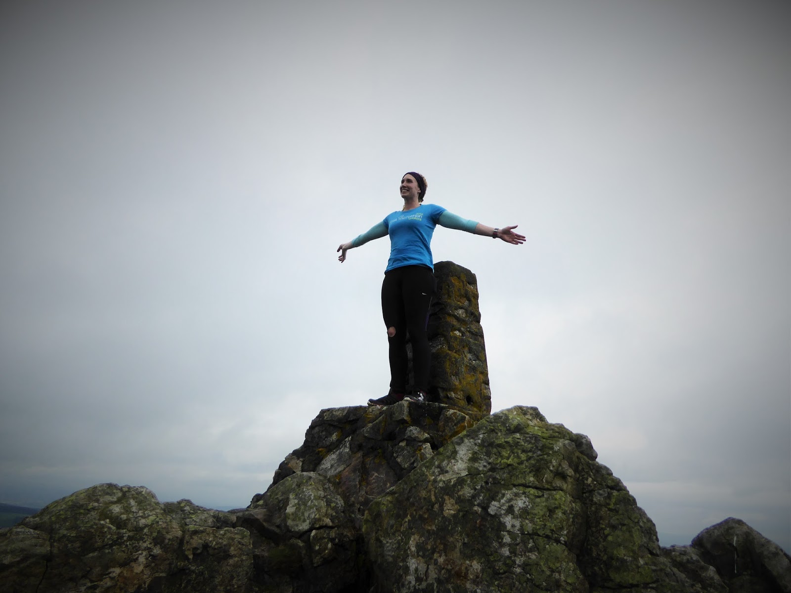 It was impossible to run along the ridge itself: the walks are made up of irregular rocks that jut out the ground, so much so that you try and trot a few steps and before long you've caught your foot on one and nearly go flying...so you check yourself, walk for a few steps, get to section that you think is runnable, start to trot, you catch your foot...